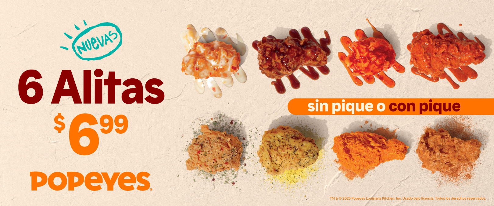 Prueba las 6 alitas por solo $6.99 en tu Popeyes más cercano.