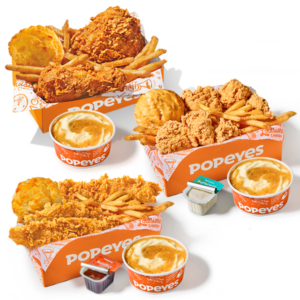 Cambio de complemento por Mac & Cheese tiene un costo adicional de 0.79¢. Cambio de presa a pechuga tiene costo adicional de $1.19. No se puede combinar con otras ofertas. Fotografías a nivel ilustrativo. TM & © 2025 Popeyes Louisiana Kitchen, Inc. Usado bajo licencia. Todos los derechos reservados.