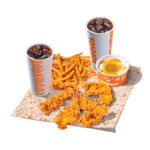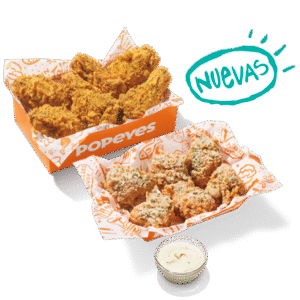 Saborea esta oferta para 2 personas que incluye 6 tenders, 2 complementos regulares y 2 refrescos.