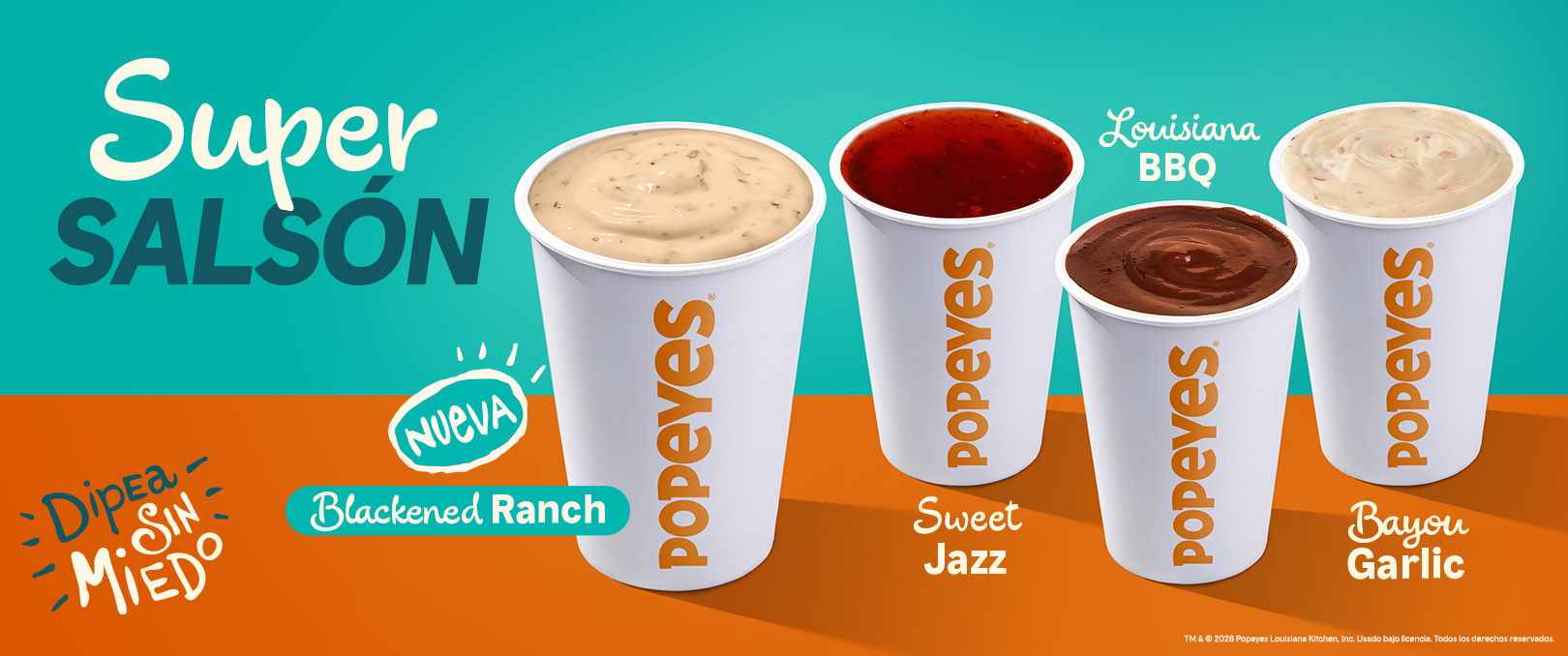 Con el Super Salsón y los Salsones, hay mucha salsa para dipear todo lo que te gusta de Popeyes: desde presas y tenders hasta las papas Cajún o el Chicken Sandwich.
